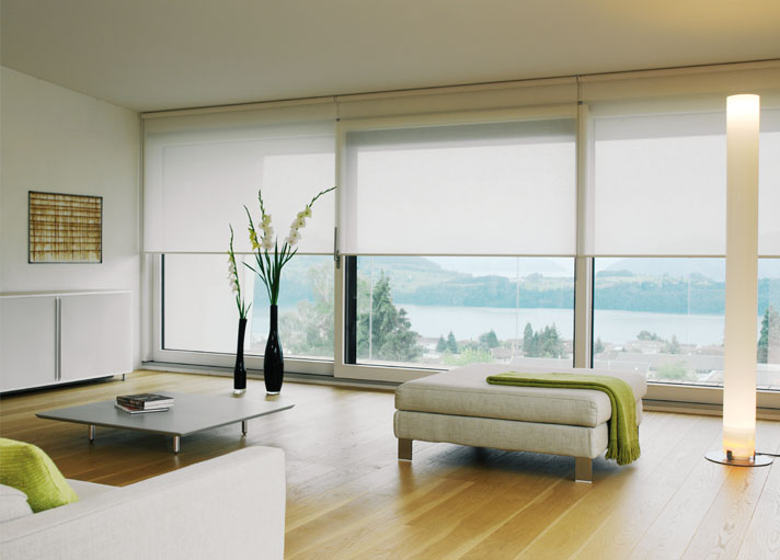 Im innenliegenden Sicht- und Blendschutz sind Rollos die am leichtesten zu bedienenden Systeme. Die klaren Linien passen besonders gut zu moderner Architektur und zu zeitgemässer Inneneinrichtung.