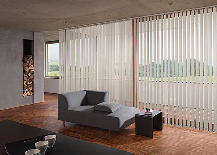 Die textilen Vertikal-Jalousien modulieren das Licht und überzeugen im privaten Wohnbereich. An grossen Fensterflächen, Türen, Oberlichtern, vielen Sonderformen oder als Raumteiler bieten sie vielfältigen Sicht- und Sonnenschutz. Im Objektbereich und für Bildschirm-Arbeitsplätze sind sie ebenfalls bestens geeignet.